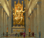 Erected by Queen Artemisia in memory of her husband King Mausolus of Caria (in Asia Minor), who died 353 BC. It stood 140 feet high. The beauty of the Mausoleum is not only in the structure itself, but in the decorations and statues that adorned the outside at different levels on the podium and the roof. All that remains are a few pieces in the British Museum and the word 'mausoleum' in the English language. |
