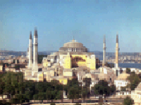 The vast structure was erected within six years (AD 531 - 537). The domed basilica was the largest enclosed space of its time and became later a model for many Islamic mosques throughout the Arab world.